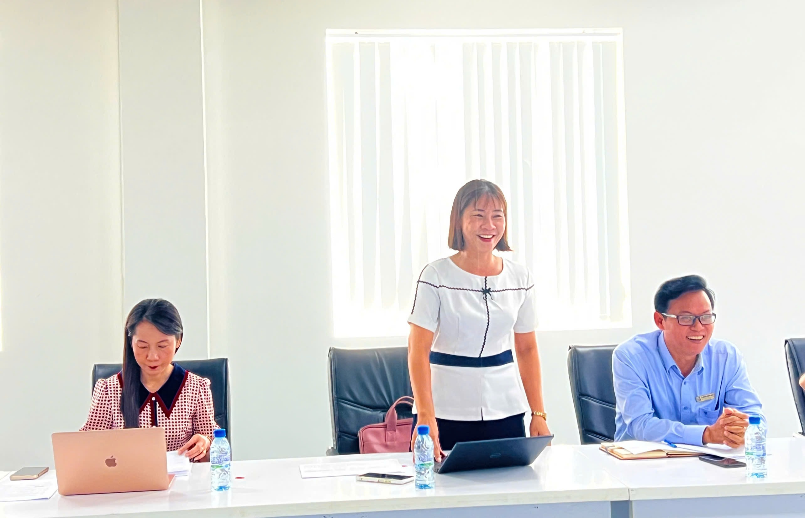 TS Đào Thị Thu (Khoa Sư phạm) – Đại diện Hội đồng xây dựng Chương trình đào tạo trình độ đại học chính quy năm 2025 ngành GDTC (số 774/QĐ-ĐHBL ngày 22/10/2025 của Hiệu trưởng Trường Đại học Bạc Liêu) trình bày nội dung CĐR của Chương trình đào tạo trình độ đại học ngành GDTC và các quy trình thực hiện, kết quả khảo sát, đối sánh chuẩn đầu ra.
