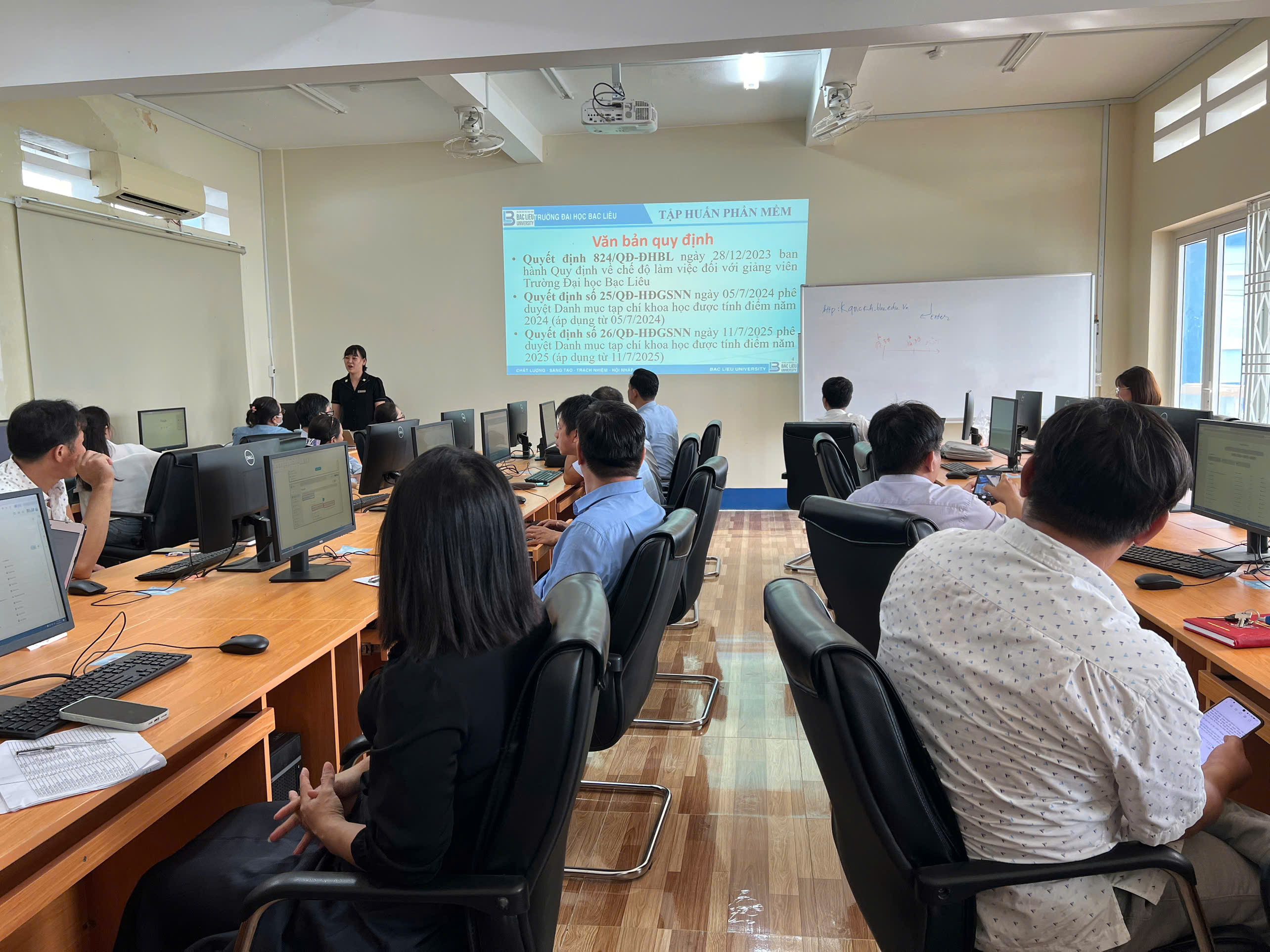Trường Đại học Bạc Liêu tổ chức Tập huấn thống kê công trình NCKH năm học 2024-2025 từ ngày 06/8/2025 – 08/8/2025 tại Phòng máy 3, Khoa KT&CN cho gần 130 giảng viên các khoa Sư phạm, KHXH, KT&CN, KT&L, NN&TS và lãnh đạo, chuyên viên các Phòng ban có tham gia NCKH.