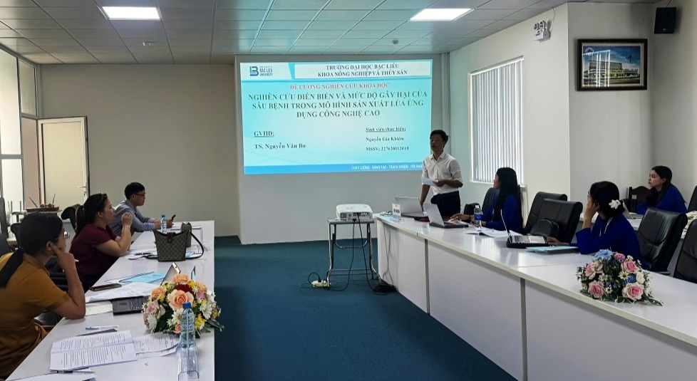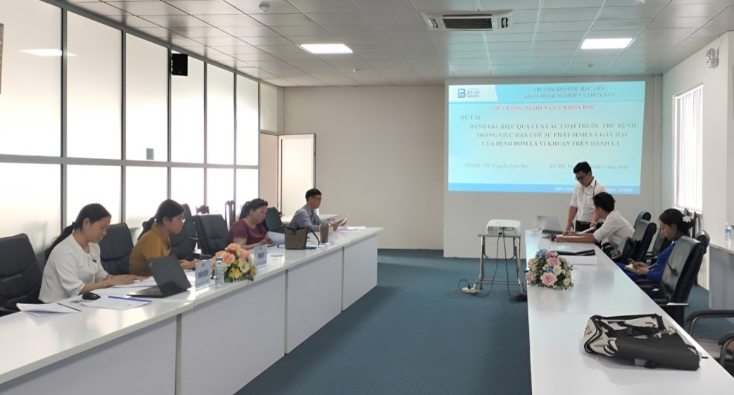 Khoa Nông nghiệp và Thủy sản 08 đề tài gồm: “Thử nghiệm mô hình trồng cải kale (Brassica oleracea) bằng phân hữu cơ kết hợp dịch trích thảo mộc trong quản lý sâu bệnh hại tại nhà lưới Trường Đại học Bạc Liêu”; “Đánh giá hiệu quả sử dụng lá húng chanh (Plectranthus amboinicus) và mơ lông (Paederia tomentosa) làm phụ gia sinh học trong chăn nuôi gà ác”; “Thử nghiệm mô hình trồng dâu tây (Fargaria vesca L.) bằng phân hữu cơ kết hợp dịch trích thảo mộc trong quản lý sâu bệnh hại tại nhà lưới Trường Đại học Bạc Liêu”; “Nghiên cứu diễn biến và mức độ gây hại của sâu bệnh trong mô hình sản xuất lúa ứng dụng công nghệ cao thích ứng với biến đổi khí hậu tại xã Hòa Bình, tỉnh Cà Mau”; “Đánh giá hiệu quả của các loại thuốc trừ bệnh trong việc hạn chế sự phát sinh và gây hại của bệnh đốm lá (Xanthomonas axonopodis pv.alli) vi khuẩn trên hành lá (Allium fistulosum L.)”; “Đánh giá hiệu quả của nấm xanh (Metarhizium anisopliae) trong phòng trị rầy nâu (Nilaparvata lugens Stal) trên cây lúa tại nhà lưới Khoa Nông nghiệp và Thuỷ sản, Trường Đại học Bạc Liêu”; “Nghiên cứu ảnh hưởng của các nguồn thức ăn khác nhau trong nuôi sinh khối Copepoda Apocyclops sp tại Trường Đại Học Bạc Liêu”; “Nghiên cứu bổ sung tinh bột nghệ vào thức ăn cá trê vàng (Clarias macrocephalus) giai đoạn nuôi thương phẩm”.