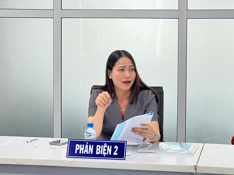 Tham dự hội đồng xét duyệt có PGS.TS. Tiền Hải Lý – BGH - Chủ tịch Hội đồng; TS. Nguyễn Thu Dung, Chi cục Chất lượng, chế biến và phát triển thị trường, Sở NN&MT tỉnh Cà Mau – UV Phản biện 1; TS. Trần Thị Bé, Khoa NN&TS – UV Phản biện 2; TS. Nguyễn Thị Bích Vân, Khoa NN&TS – Ủy viên; TS. Nguyễn Thị Kiều – Phòng QLKH&QHĐN - Ủy viên.