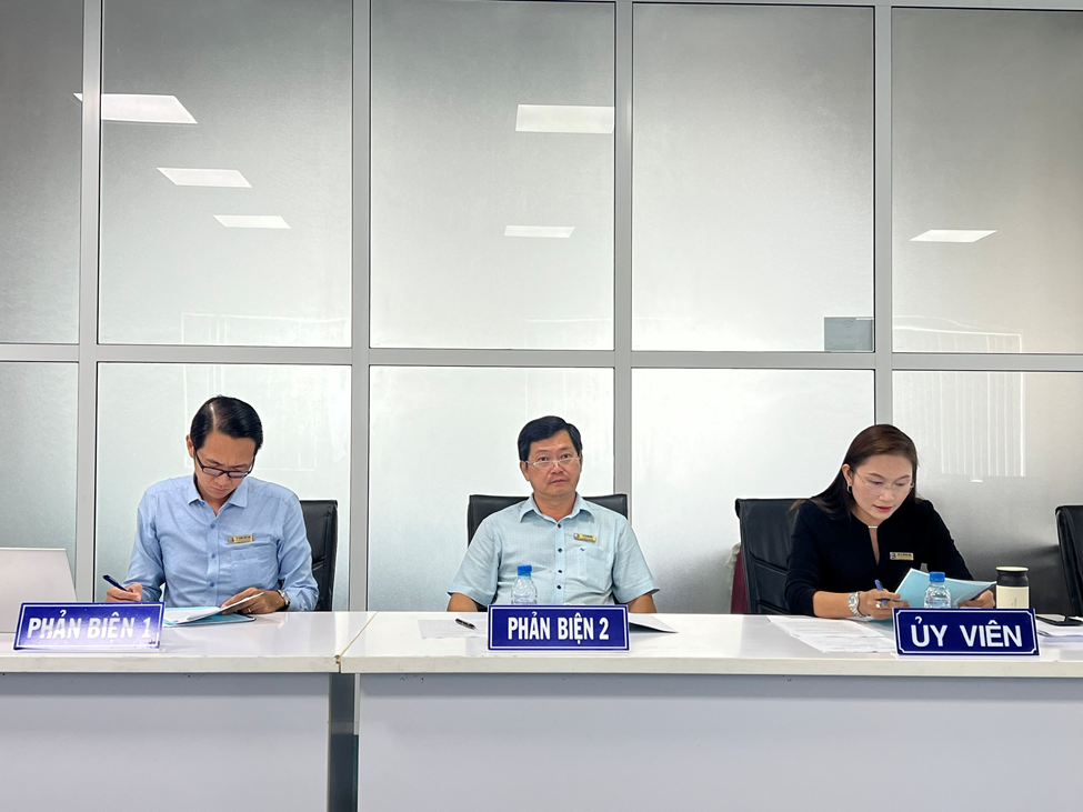 Tham dự hội đồng xét duyệt có TS. Phan Văn Đàn, BGH - Chủ tịch Hội đồng; TS. Trịnh Hữu Lực, Khoa KT&L – UV Phản biện 1; TS. Tô Vĩnh Sơn, Phòng QLĐT và CTSV – UV Phản biện 2; TS. Lê Huỳnh Như, Khoa KT&L – Ủy viên; TS. Nguyễn Thị Kiều – Phòng QLKH&QHĐN - Ủy viên.